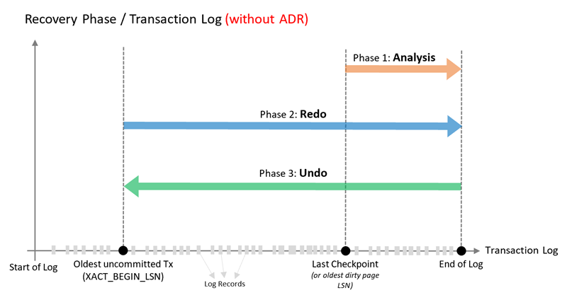下图(参考 – Microsoft Docs)显示了使用加速数据库恢复的整个数据库恢复过程。
