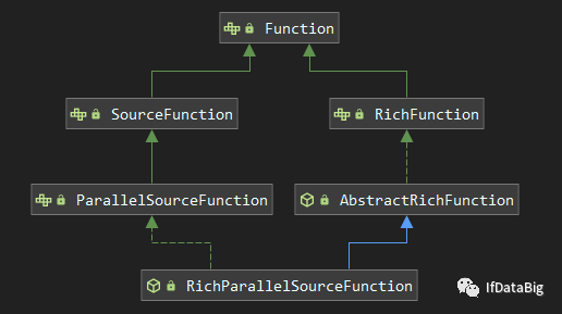 ParallelSourceFunction 直接继承自 ParallelSourceFunction,具有并行度的功能。RichParallelSourceFunction 则继承自 AbstractRichFunction,同时实现了 ParallelSourceFunction 接口,所以其除了具有并行度的功能外,还提供了额外的与生命周期相关的方法,如 open() ,closen() 。