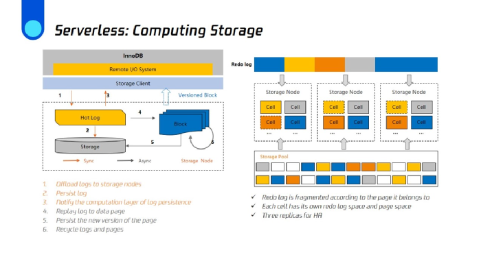 第一个功能是计算存储分离。实际上,将存储层与计算层分离是弹性扩展和Serverless的第一步。