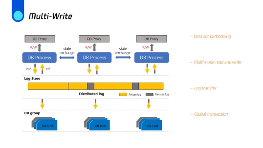 我们有一些正在探索的想法。例如,用于全局处理日志相关逻辑(如数据一致性)的专用日志服务器,从而不需要在主节点和从节点之间传输日志。同时,我们可以依靠逻辑分区的概念来进行无冲突的多点写入。存储层中的数据可以被物理分区,也可以不被物理分区。