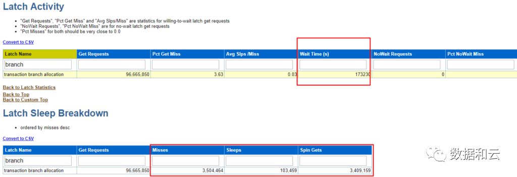 注意latch free, transaction branch allocation占用较高的db time, latch 位置主要是ksupuc(kernel service user processes push user call), 和ktcsbr(kernel transaction control component state branch), 同时每秒logon在10, 每秒事务在860左右, 是一个较忙的数据库, 同时CPU 使用率高达98%。 是否在是CPU 较高时触发了某个BUG? 在MOS中查找发现命中一Bug 20130575 .