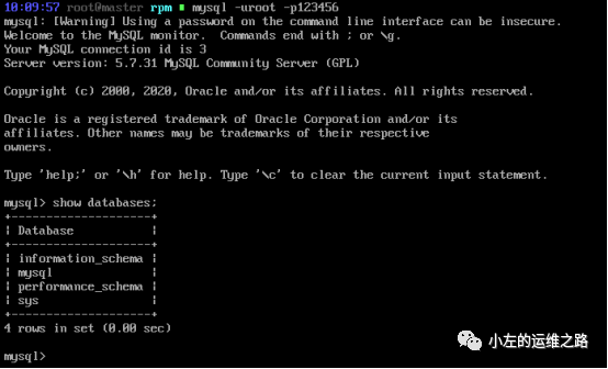 如果有则需要使用rpm -e +包名卸载,如果使用rpm -e 卸载不了mariadb,可以使用yum -y remove +包名卸载,上图显示我已经安装mysql。