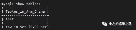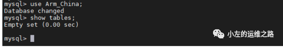 在主从MySQL中查看创建的数据库,可以看到没有表存在: