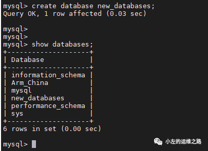 在原来的slave上创建一个新的数据库: