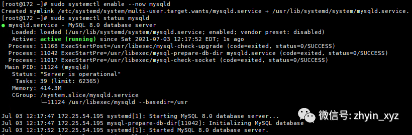 sudo systemctl enable --now mysqld# 检查MySQL服务器是否正在运行sudo systemctl status mysqld