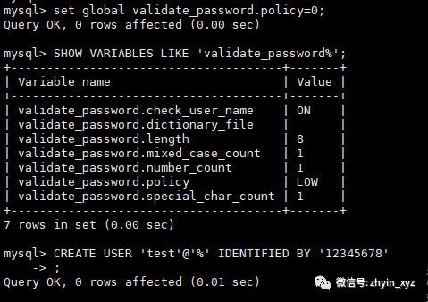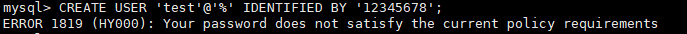 CREATE USER 'test'@'%' IDENTIFIED BY '12345678'