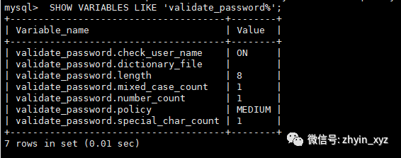 | validate_password_mixed_case_count | 整个密码中至少要包含大/小写字母的总个数 |