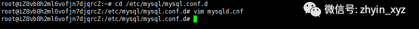 cd etc/mysql/mysql.conf.d# 编辑配置文件vim mysqld.cnf
