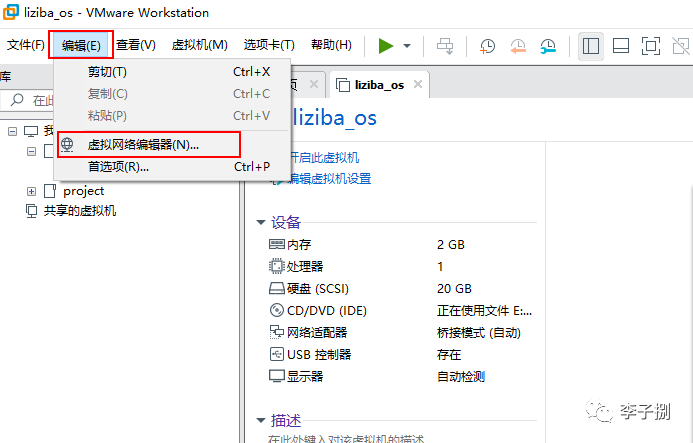 点击已经安装好的虚拟机,选择网络适配器(也可以直接右击虚拟机,进入设置)