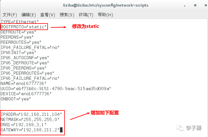 vi etc/sysconfig/network-scripts/ifcfg-eno16777736