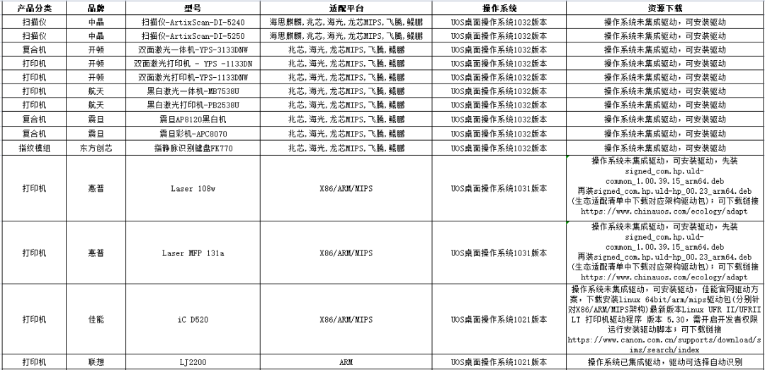 那么,常用的外设产品在两大操作系统上的适配情况如何呢?今天,小编整理了部分外设产品分别在麒麟和统信UOS的适配情况,欢迎大家订阅分享。