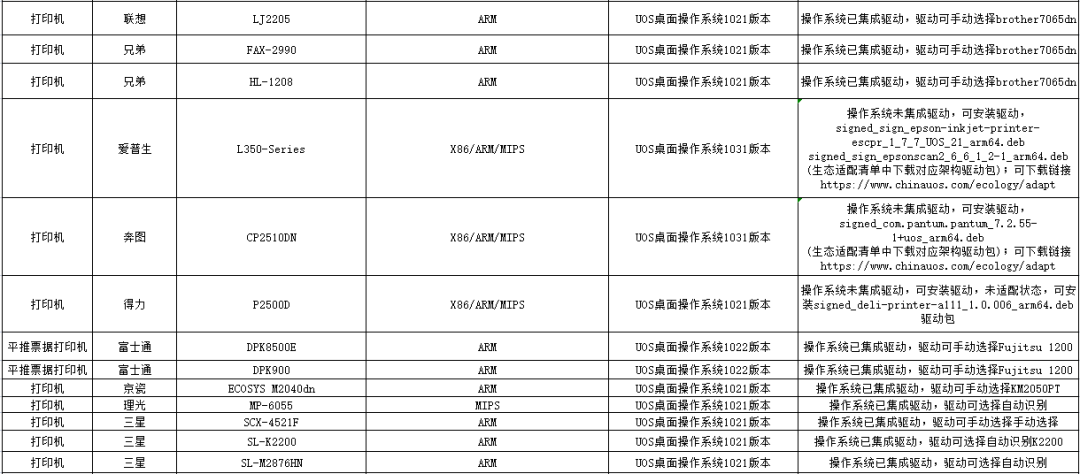 统信UOS外设适配进展