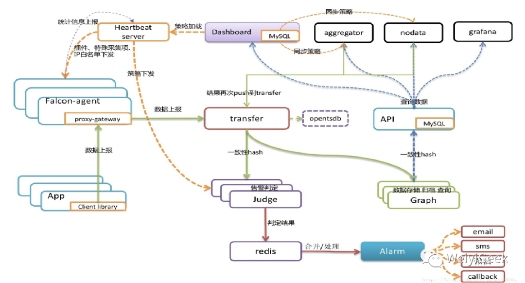 优点: 支持多种方式报警,且会对警告进行合并处理,不会进行短信轰炸。