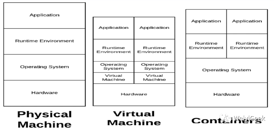 2.后来人们开始在物理机中进行虚拟化来安装多台虚拟机例如(VMware/kvm)