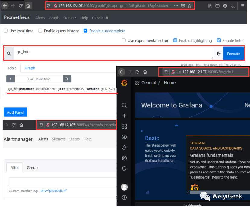 alertmanager 对应的 nodeport 端口为 30070 访问 http://10.10.107.202:30070