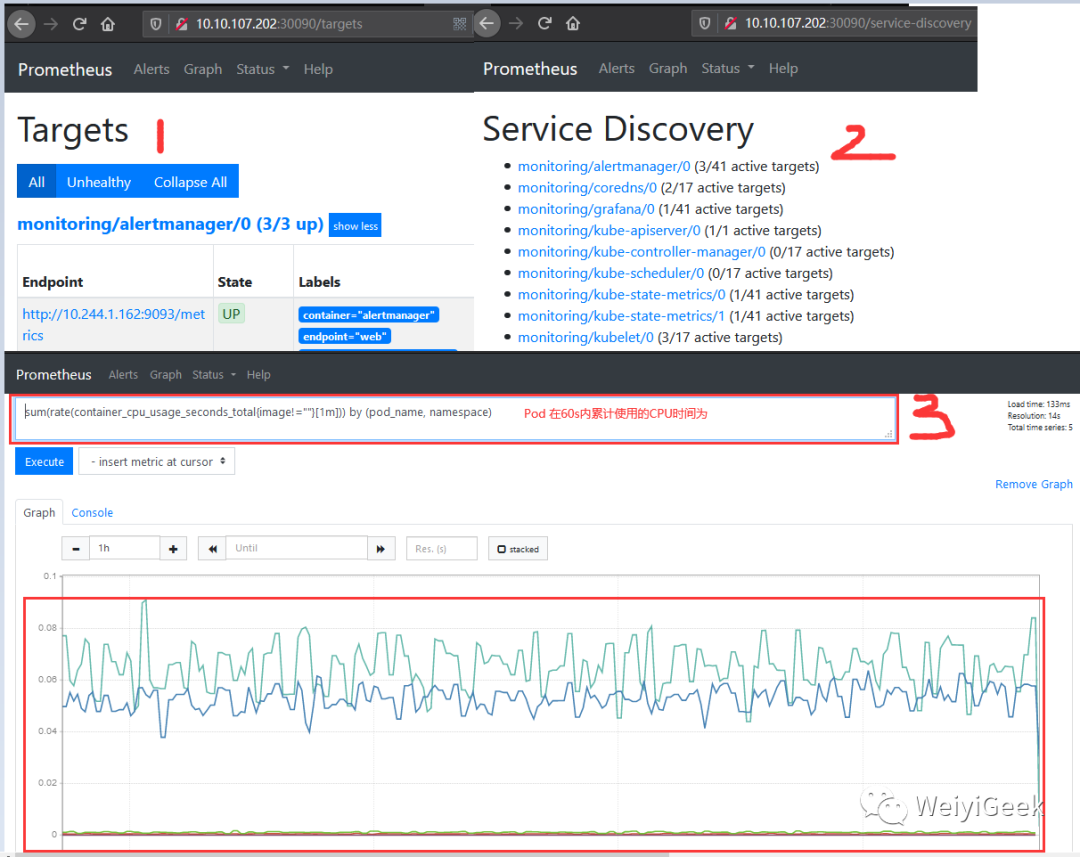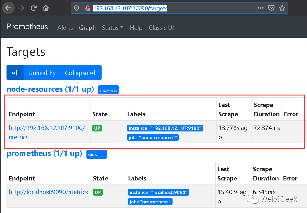 prometheus 对应的 nodeport 端口为 30080 访问 http://10.10.107.202:30080