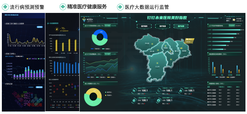 打造丰富的健康医疗大数据智慧应用体系,提供如:医疗大数据运行监管平台、精准医疗健康服务、流行病预测预警等应用建设,实现医疗服务的创新与数据价值的充分应用。