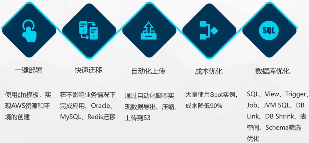 在泰岳和客户团队一起努力下,从原来的物理机房迁移到AWS云平台,客户获得的第一个好处就是可以使用托管数据库服务,泰岳的云迁移团队将Oracle数据库迁移到了RDS Oracle数据库,RDS能够大幅降低数据库的运维成本,以前在自建数据中心困扰已久的数据库扩容、备份、可靠性问题在云上的托管数据库都可以轻松完成。其次是大幅度提升了系统的灵活性,可以快速应对业务的快速发展。过去每当业务快速增长,访问量激增时,都必须经过购买服务器、安装、测试、上架这样的繁复流程,不仅需要较长的时间才能完成系统扩容,而且一但访问量减少,备用服务器又会造成浪费,导致成本增加。利用Amazon EC2、Elastic Load Balancing和Auto Scaling可以自动根据业务量进行扩容,既增强了系统的灵活性,又降低了成本;迁移到AWS还给客户带来了一个额外好处,就是在神州泰岳技术专家的帮助下,重新梳理了整个系统架构,降低了系统的耦合性,大量使用spot实例让服务器成本降低90%,同时跨多个可用区的设计,使系统稳定性和可靠性得到大幅度提高。