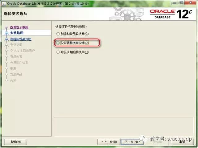 4、由于需要自定义数据库实例,所以选择仅安装数据库软件