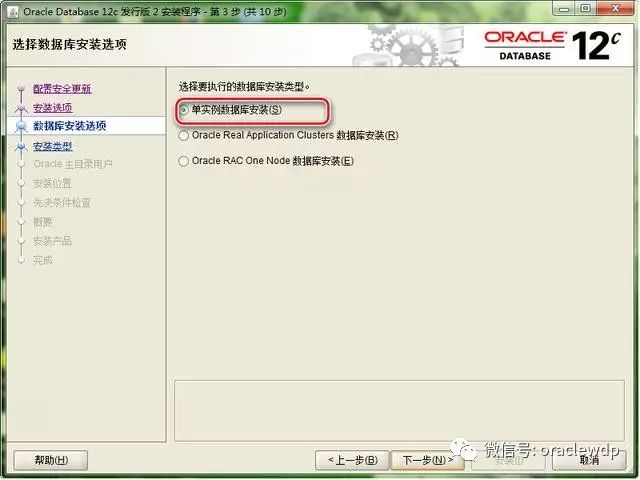 5、选择安装单实例数据库