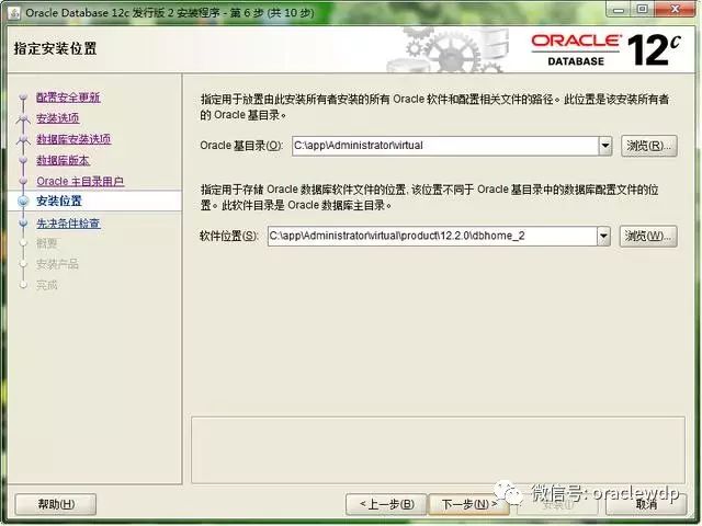 8、设置oracle软件安装位置