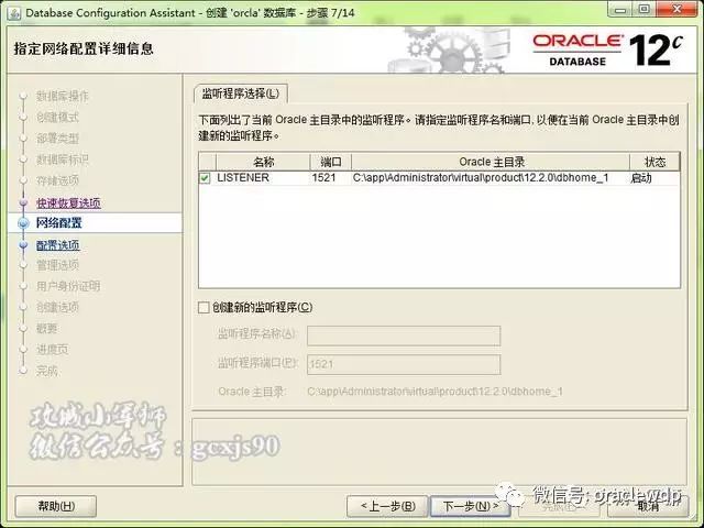16、端口号使用1521,下一步,监听创建完成
