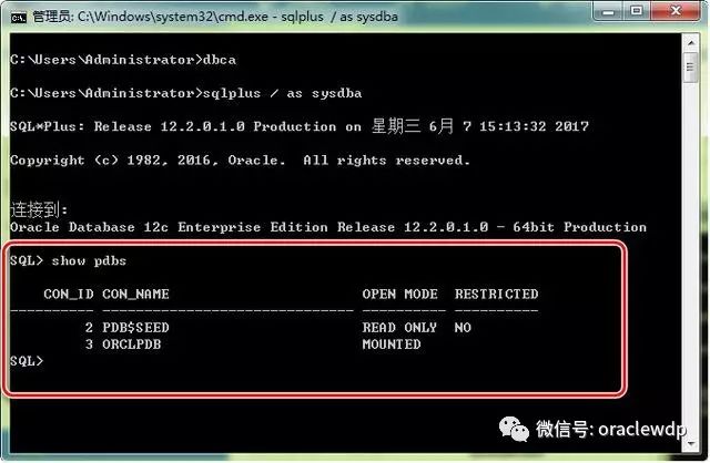 17、创建完监听后,进入CMD输入dbca