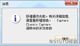 2移植过程最后可能出现下面提示:捕获期间出错,调用中的无效参数