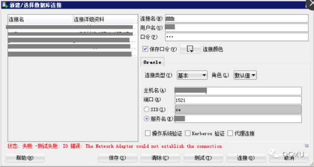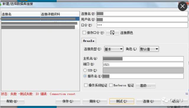 上午项目经理反映数据库时好时不好。具体表现为:应用程序正常;客户端程序有时能连上,有时连不上(连不上时间居多),报错:“IO错误:The Network Adapter could not establish the connection”或“IO错误:Connection reset”。IP能ping通,无丢包。