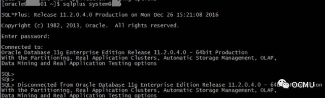 在数据库服务器上连数据库(注,当时在节点1上测试,scan ip在节点1)。