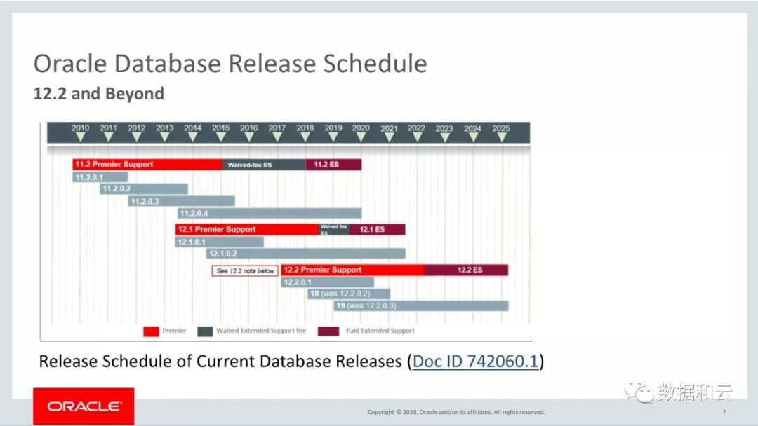 首先我们再次明确一下 Oracle 的版本策略,18c 等同于 12.2.0.2 ,19c 则等同于 12.2.0.3 ,19c 将是 12c 的最终版本,2020年 Oracle 数据库将发布 20c 。