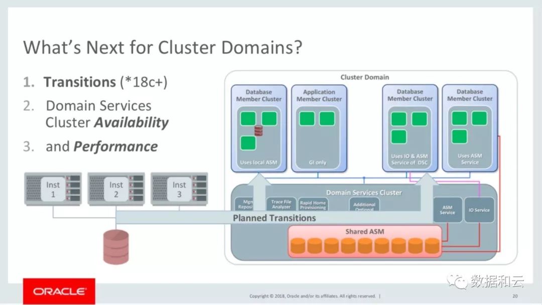 革新,在我看来,Oracle RAC 集群中,最重要的一个变化就是 Cluster Domain - 集群域,这是自 Oracle 12.2 引入的新特性,目标是将 RAC 中的各种资源服务化,解耦合,从而实现更好的扩展性、几种管理和维护诊断。