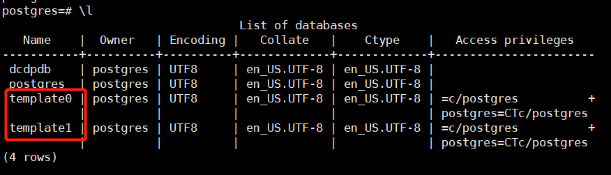 13592 | template0 | 10 | 6 | en_US.UTF-8 | en_US.UTF-8 | t | f | -1 | 13592 | 480 | 1 | 1663 | {=c/postgres,postgres=CTc/postgres}