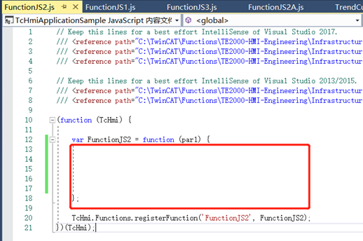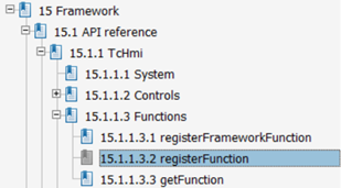其中,TcHmi是个固定的指代,而.Functions按理并行的还有很多子元素,但是在JavaSritpt编辑器中没有Smart Coding功能,所以只能有样学样。同理,.regesterFuntion也是这样。在手册中找到了TcHmi下的内容,比如TcHmi.Functions.registerFunction