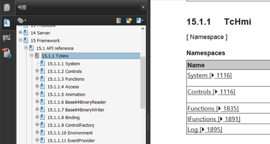 在手册中查看TcHmi,完整的内容列表如下: