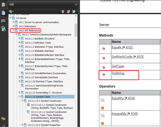 在许多Class的Method中,都包括了ToString。在TC HMI手册中搜索可得,例如: