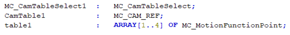 对于复杂或者点数较多的凸轮表,用辑器完成并读入PLC后,建议以写文件的方式保存成不同的文件。而后续的PLC程序可以读取不同的文件来填充CamTable的数据。