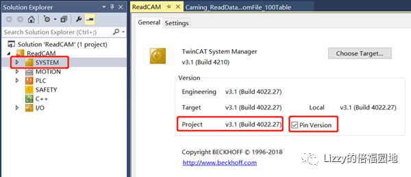上图中勾选“PinVersion”之后,无论项目打包或者复制到其它电脑上任何高版本的TwinCAT XAE中打开,都会自动识别项目版本,并用TwinCAT3.1 Build 4022.30的RM去装载,避免了版本不兼容引起的编译问题。