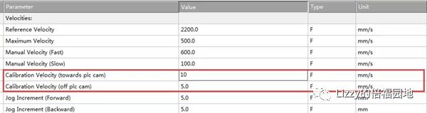 在第二节已经谈到,使用PLCCAM回零只需设置4个参数,2个速度参数在Axis的Parameter(轴参数)的页面,如下图所示,注意在TwinCAT3中该参数的位置有所变化,但是参数名称不变,此处为TwinCAT2.11截图;