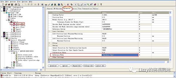 回零方向参数在Enc的Parameter里面,别问我怎么找到。。。。下面这两个方向,第一个是回参考点找上升沿的方向,第二个是找下降沿的方向;所以这两个方向一般是相反的。注意,下面的方向前面有Invert,默认都是正向的,所以为false是正向,Ture是负向,一般下面两个都要修改。