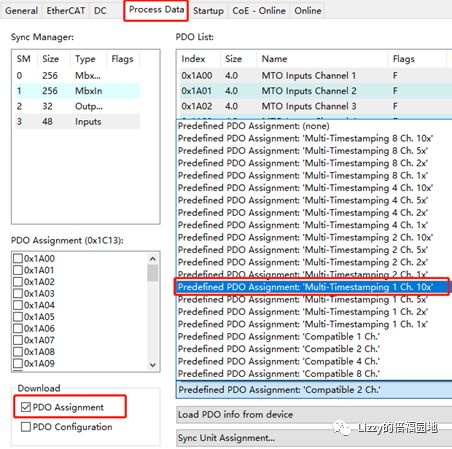EL1259提供的预定义PDO配置包括Multi-Timestamping和Compatible两种,如果前述,新项目建议都用多时间戳模式Multi-Timestamping。根据实际情况选择适合的通道数量。