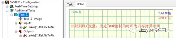 PLC Task消耗的时间,包括PLCTask中显示的Last Execute time,和IO刷新时间。