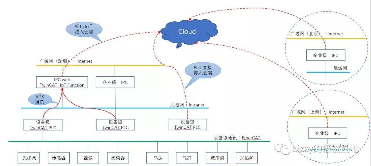 此外,对于大型和超大型的企业,其生产园区可能分布在不同城市甚至不同的国家,随着网络云技术的发展,这些大型和超大型企业,甚至可以通过云服务器直接访问分布全国甚至全球的各个分厂里的自动化设备的数据——既能收集数据又能发布指令——以实现全球范围的生产排期,工厂生产与主要原材料和部件的采购仓储以及销售运输过程的自动对接,关键设备状态监测和及时检修等等。当然,这有赖于自动化设备的控制系统对云技术的支持,以及企业本身对云平台的建设。