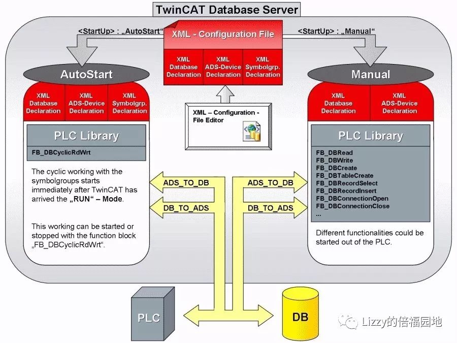 TwinCAT Database Server推出市场至少已经10年以上,成熟稳定,在各行各业大量使用。需要澄清的是,它本身不是数据库,而是提供TwinCAT PLC到数据库的桥接,通过它不仅可以把PLC数据送到普通的数据库,比如SQL、Oracle、Access等,还可以送到WinCE系统上的Compact的数据库,还可以送到Excel或者ASCII文件中,甚至还可以用XML文件用作数据库。