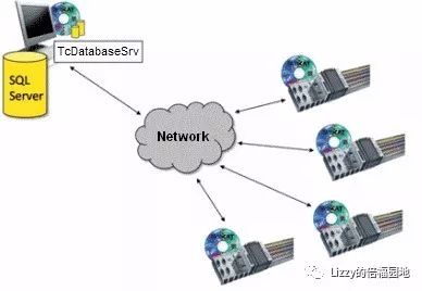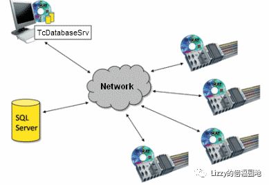 第2种:数据库保存在多台PC上,TwinCAT Database也装在单独的1台PC上。
