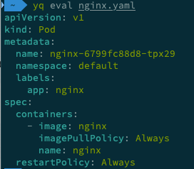 # yq eval '.metadata.name = "nginx"' nginx.yaml