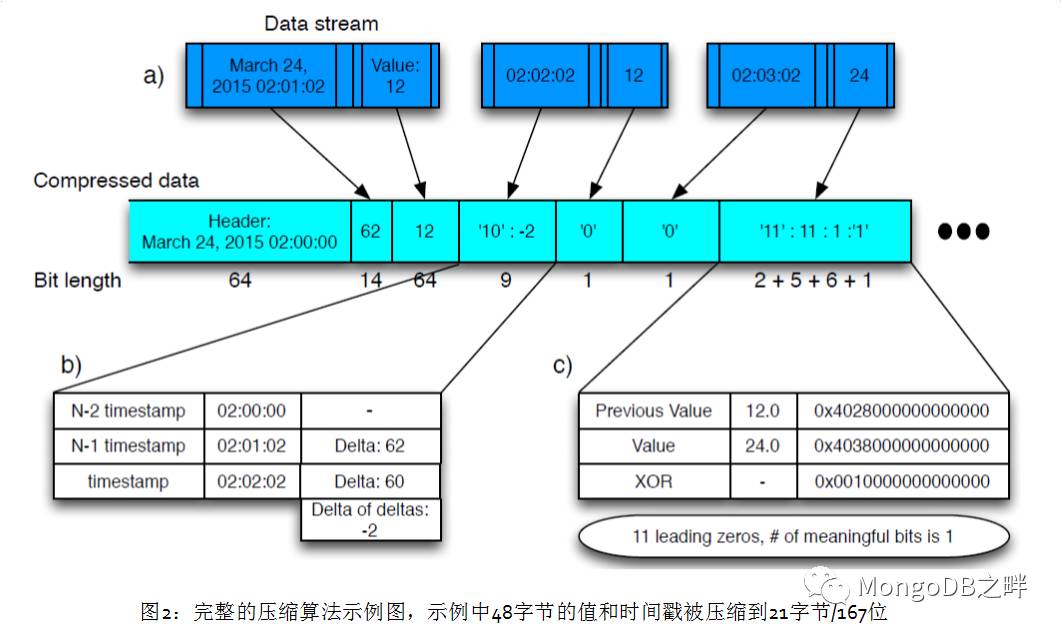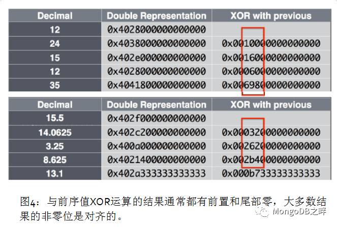 使用XOR运算编码对时间序列高效的存储压缩方案在图2有直观的展现。