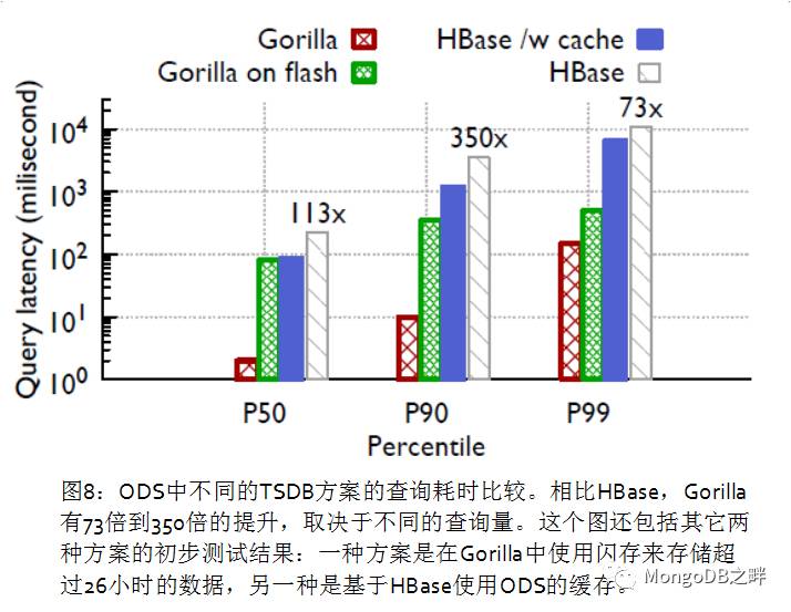 Gorilla是Facebook研发的新的TSDB,在设计上实现了上文描述的几个点。Gorilla采用write-through cache方式将最近据记录到监控系统。我们的目标是让大多数查询在10ms内返回。