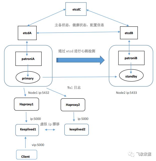 patroni高可用集群由PostgreSQL、patroni、etcd、haproxy、keepalived组成。