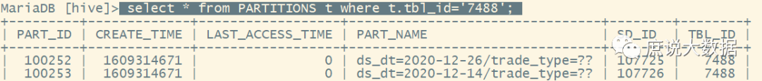 select * from PARTITIONS t where t.tbl_id='7488';